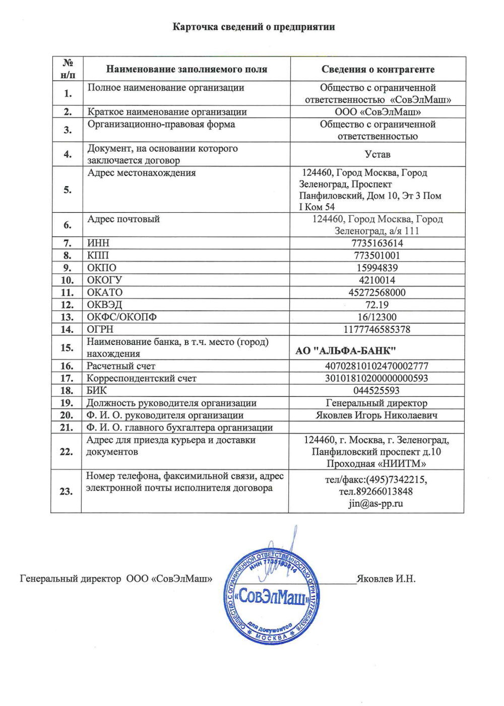 Скачать реквизиты организации ПКТБ «Совэлмаш»