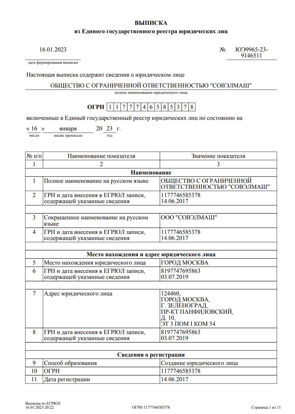 Выписка из единого государственного реестра юридических лиц