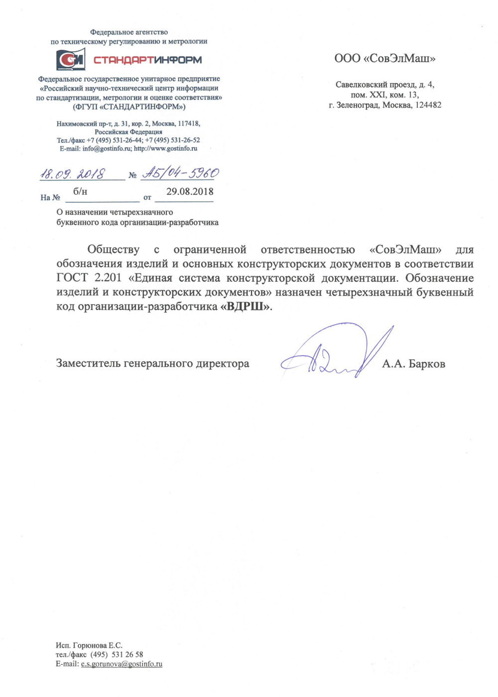 Документ о присвоении буквенной части децимального номера