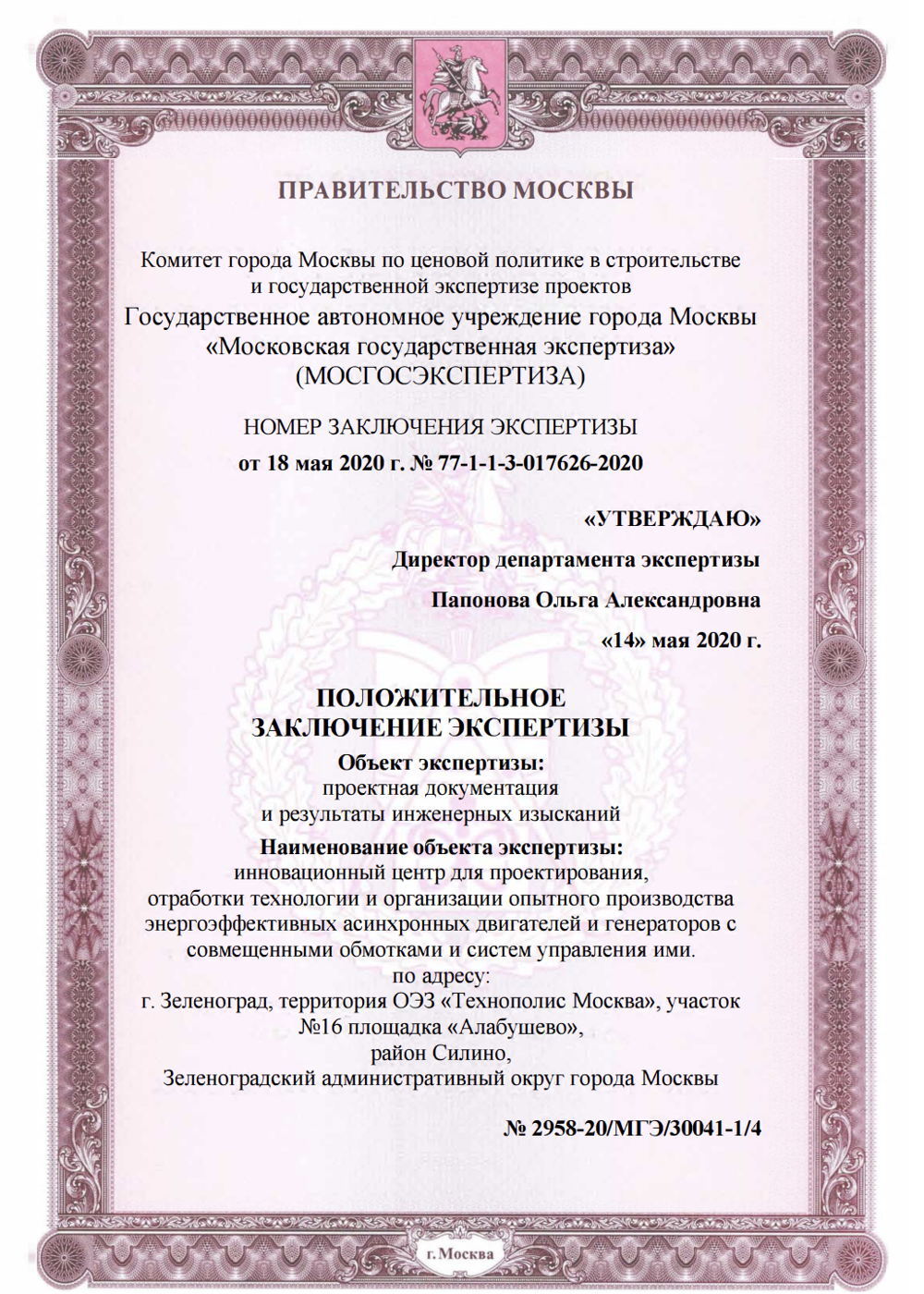 Положительное заключение экспертизы